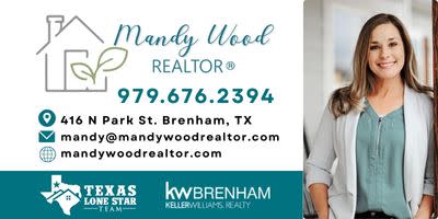 Hello, I'm Mandy Wood; a Texas Realtor®, wife of 20+ years, mother of 3, landscape designer, and proud resident of Washington County, Texas! I pride myself on staying up to date on the local market, knowing the area well, and readily assisting you whether you are buying or selling, improving your home, remodeling, or investing. I am devoted to my work on a personal level. What I put my heart into requires 110% of my effort. Your transaction is my transaction. Communication and attention to detail are my strong suits. If this is important to you, we’re the perfect team for success! Beyond the real estate transaction, I love to offer guidance, local references, and recommendations within the wonderful communities that make up South-Central Texas. It is my passion to partner with local vendors and help connect you to make this area of Texas truly your home. Let's get started! Contact me by phone, text, email, or my website; whichever is best for you. I look forward to hearing from you! mandywoodrealtor.com